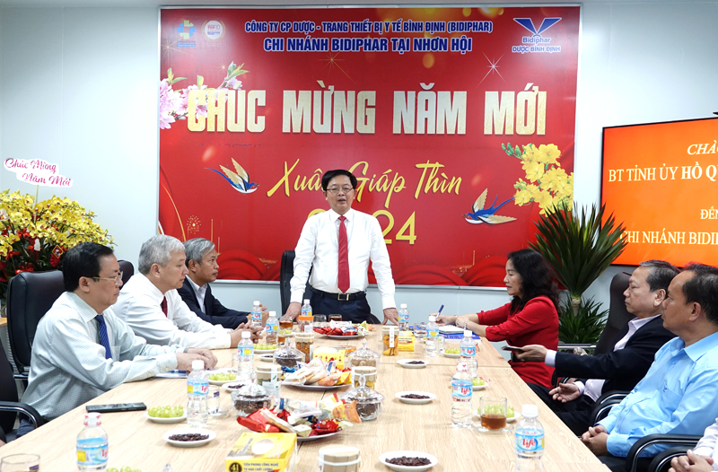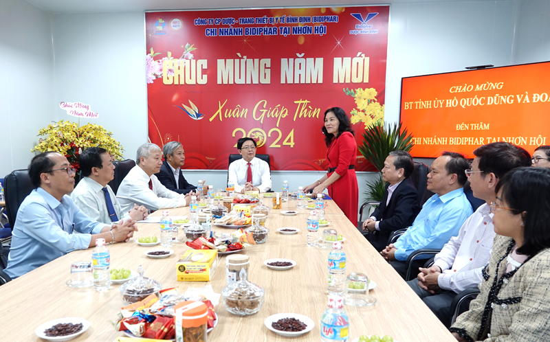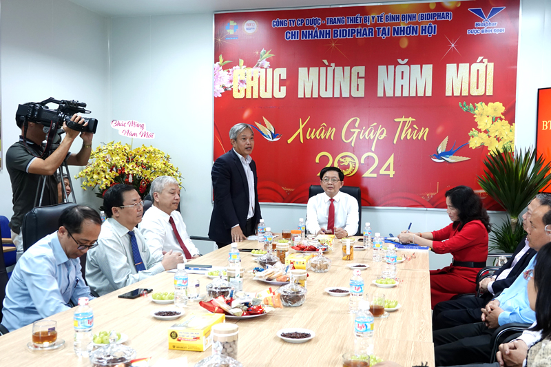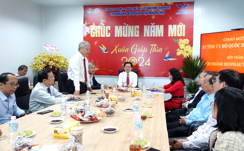 On the afternoon of February 15, 2024 (the 6th day of the Lunar New Year), BIDIPHAR – Binh Dinh Pharmaceutical and Medical Equipment Joint Stock Company was honored to welcome Mr. Ho Quoc Dung, Member of the Central Committee of Vietnam Communist Party, Binh Dinh Provincial Party Committee Secretary, Chairman of Binh Dinh Provincial People’s Council, along with leaders of provincial departments to visit, extend New Year greetings, and inspect the company’s production and business operations at the Nhon Hoi High-Tech Factory.